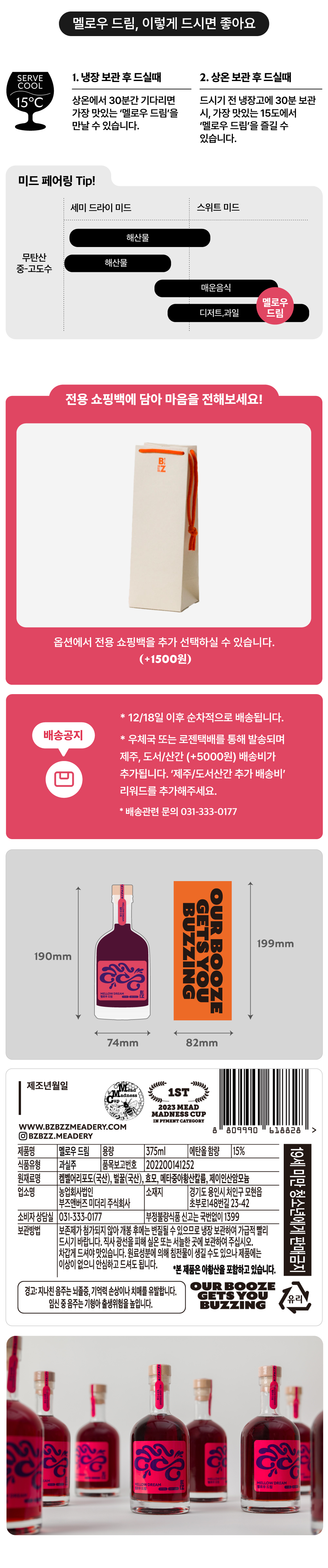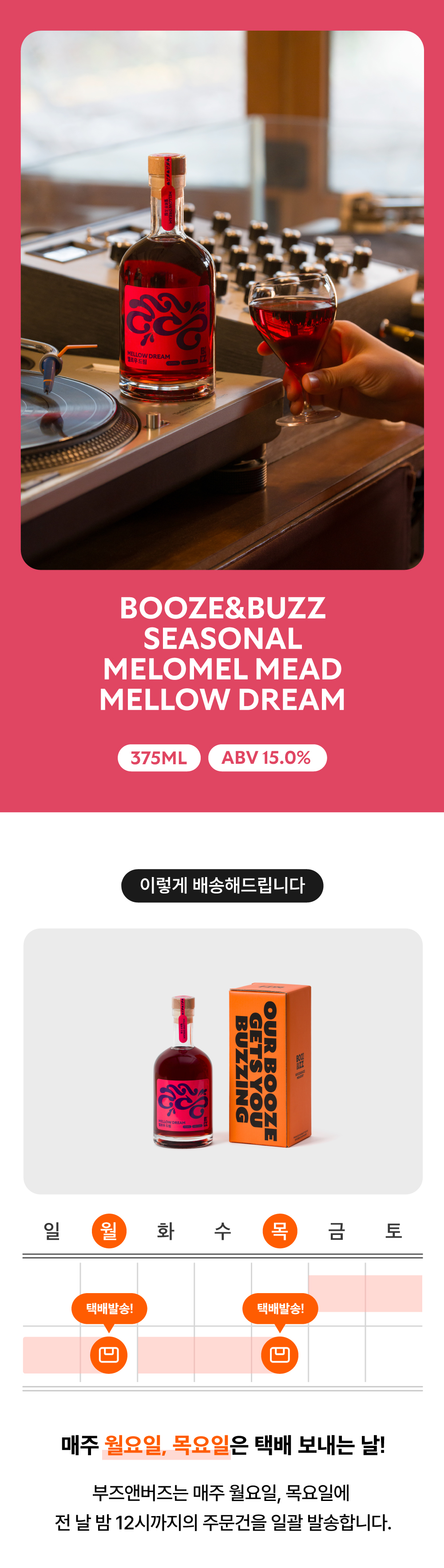 - 배송 안내 : 매주 월/목요일 발송해드리며, 발송일 전일 자정까지 결제완료된 주문건에 한하여 월/목요일 오후 발송해드립니다.